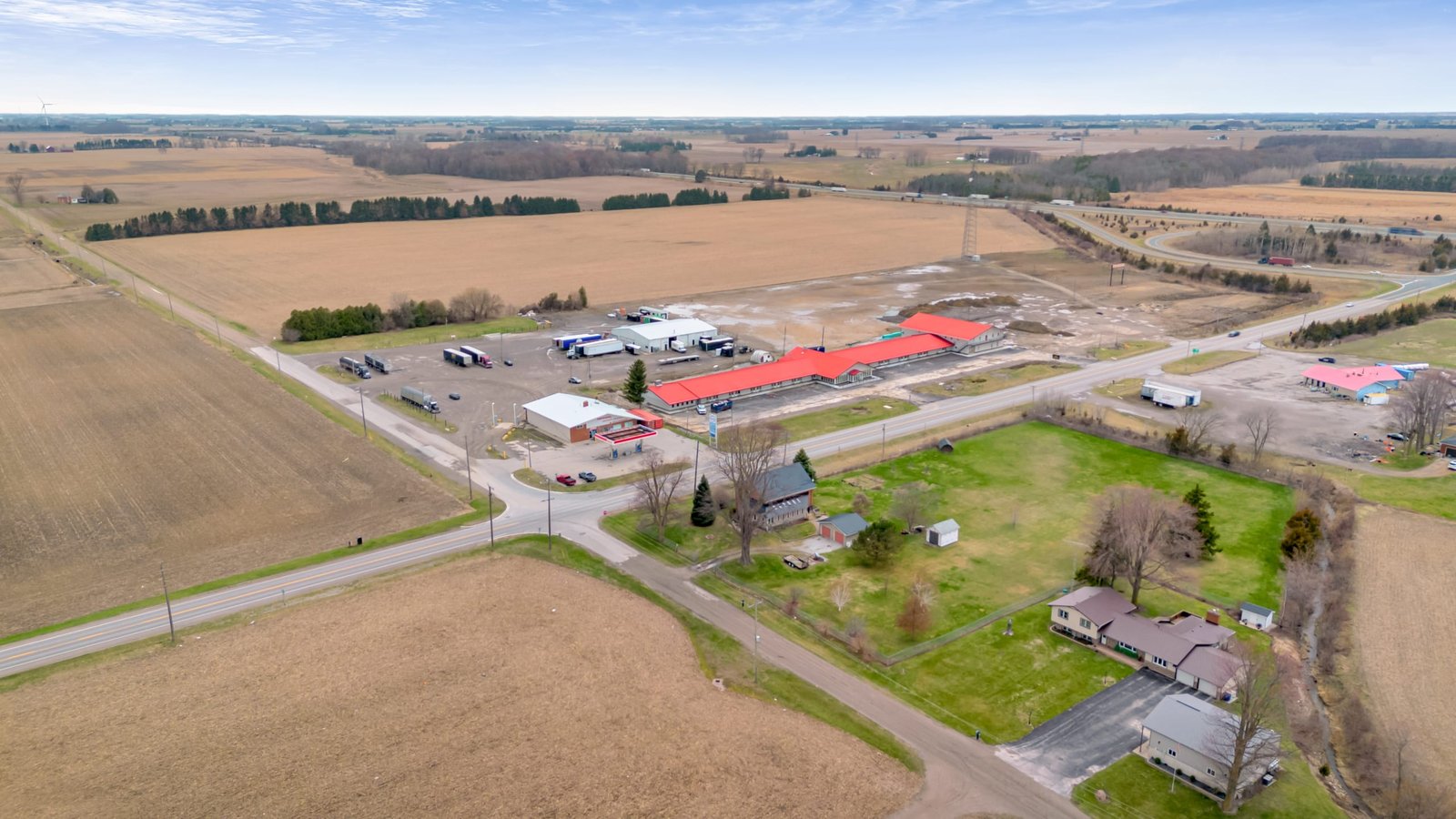 Ridgetown Feed Supply, FoodLand Grocers, Dollar Store, and more are just 6 km away — a 6-minute drive for daily errands. The Ridgetown Arena is equally close at 4.5 km.